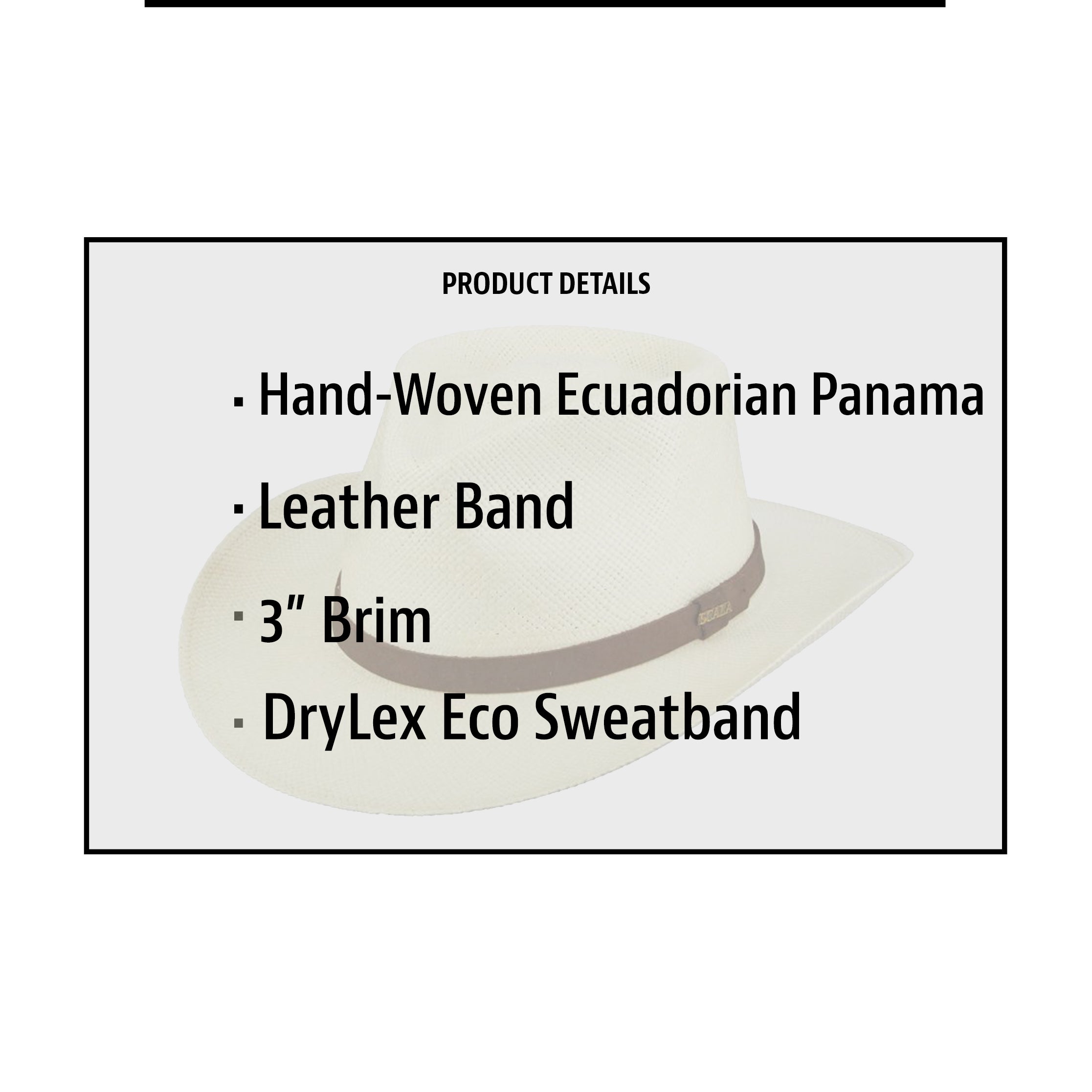 A classic look with a bit of country twang, the Scala Albuquerque wide brim outback hat gives you the best of many worlds. Hand-woven Ecuadorean Panama straw, with a leather band, make your outfit a jack of all trades for many occasions.