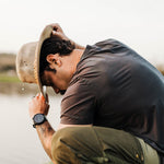 When the warm weather calls your name out onto the porch at night, you're going to want your favorite hat with you. This canvas Aussie hat with mesh crown is lightweight and stylish, ensuring the ideal summer night.