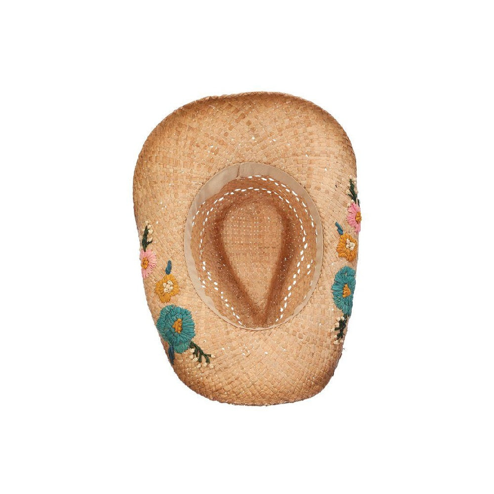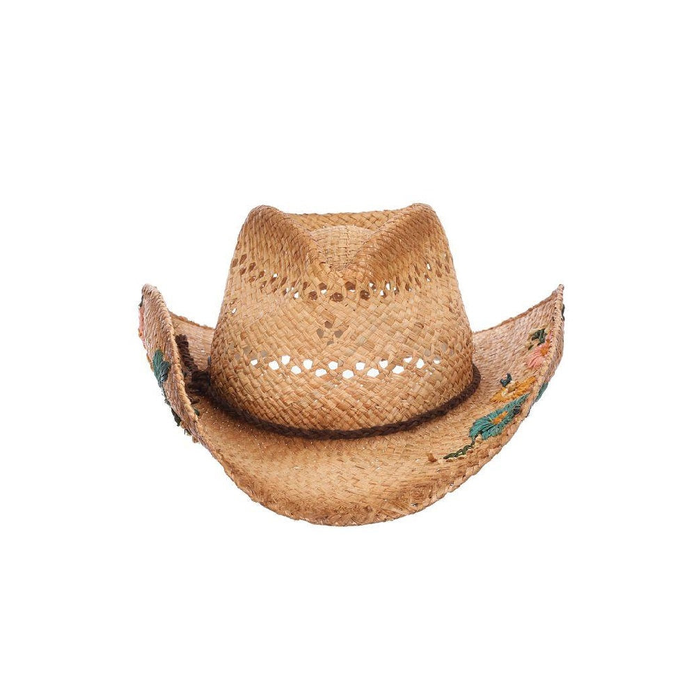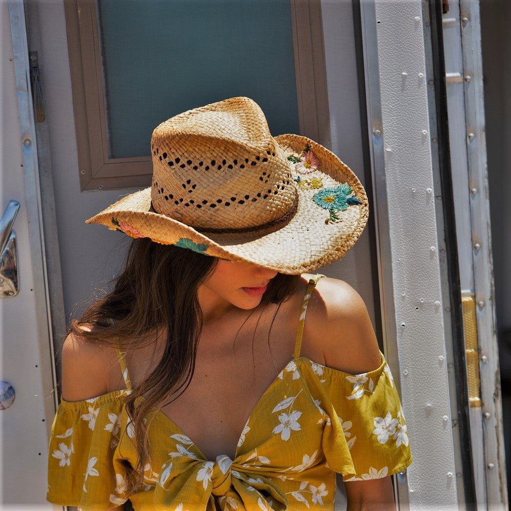 Get ready to rock-n-roll all day -and night- long at the next music festival. This raffia western, with a 3-inch brim and floral embroidery is just the sun protection accessory you need. Plus, it has a shapeable brim, which allows you to style it in your own unique way.